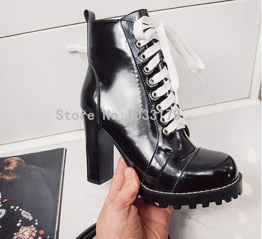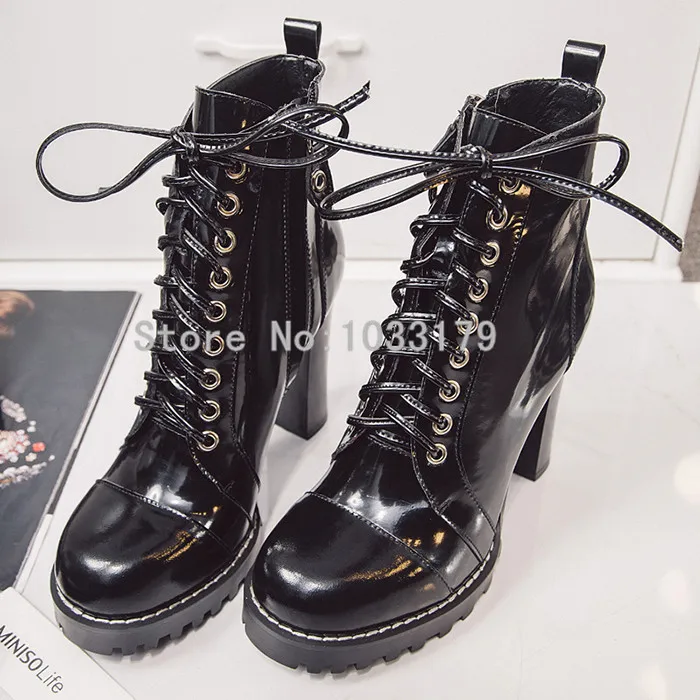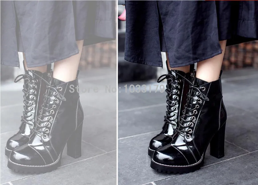 Best Autumn High Rating Product provide botines mujer, short bootie, women ankle boots Excellent Limited Brand Punk Women Ankle Boots Patent Leather Platform Short Booties Martin High Heels Women Pumps Lace Up Militares Botines Mujer. Get 35% discount Now! Now US $97.56/piece. Hurry buy Now before back to normal price! Normal price US $150.09. Dont waste your time. Buy Now only in MS Shopping Store Trusted Seller Store!